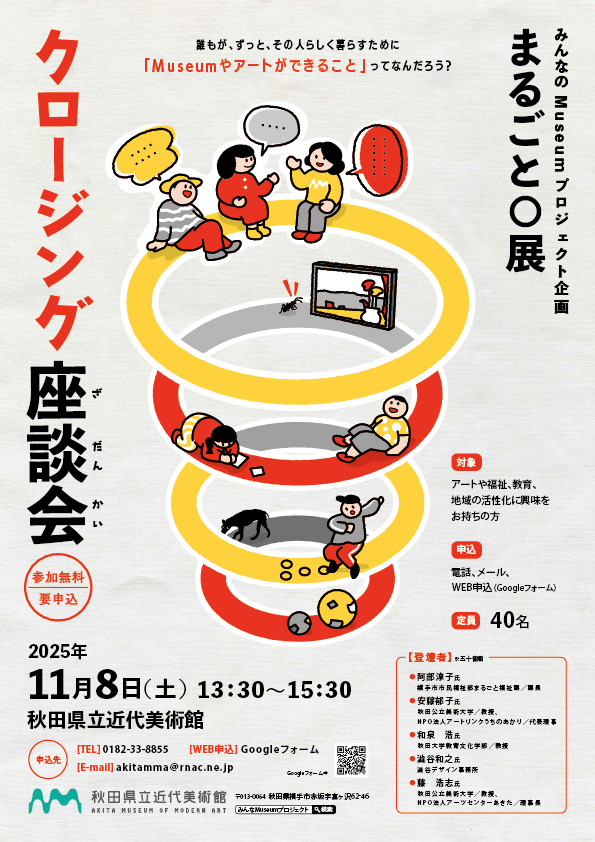 「まるごと〇展」の締めくくりに「クロージング座談会」を開催します。Museumやアートの可能性について一緒に考えてみませんか?