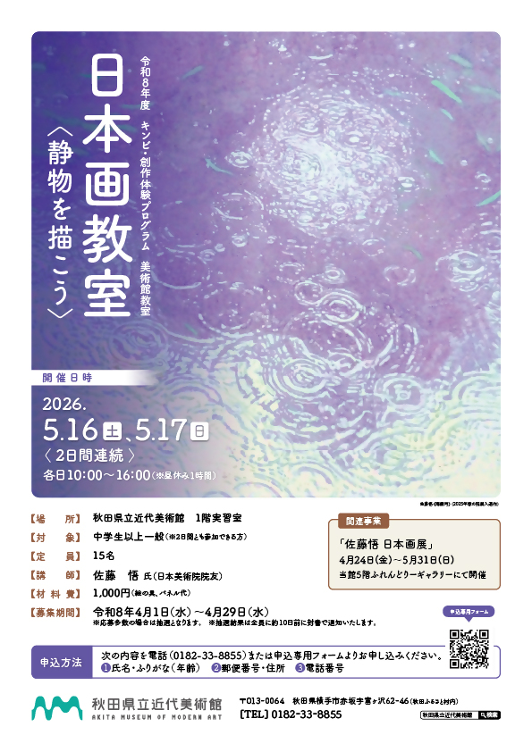 中学生以上一般を対象とした「美術館教室」のご案内です。